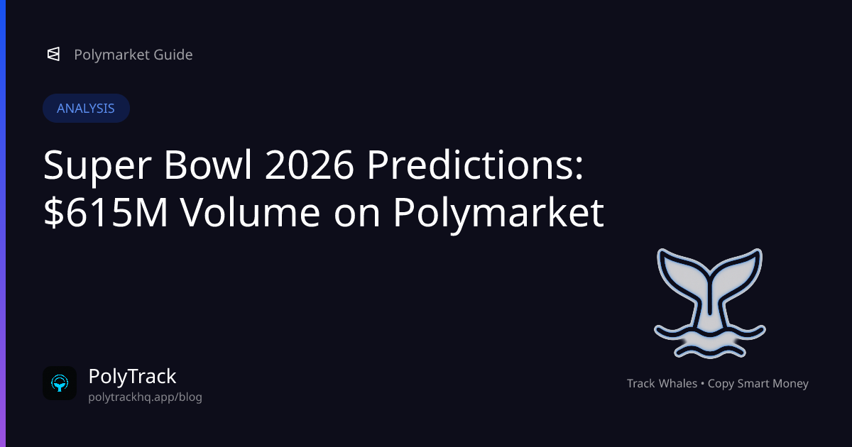 Polymarket's Super Bowl LIX markets have exploded to $615M+ in trading volume—making it the largest sports prediction market in history. With the playoffs approaching and the NFL's contender picture crystallizing, here's your complete guide to Super Bowl 2026 betting on Polymarket including odds analysis, trading strategies, and whale activity tracking.