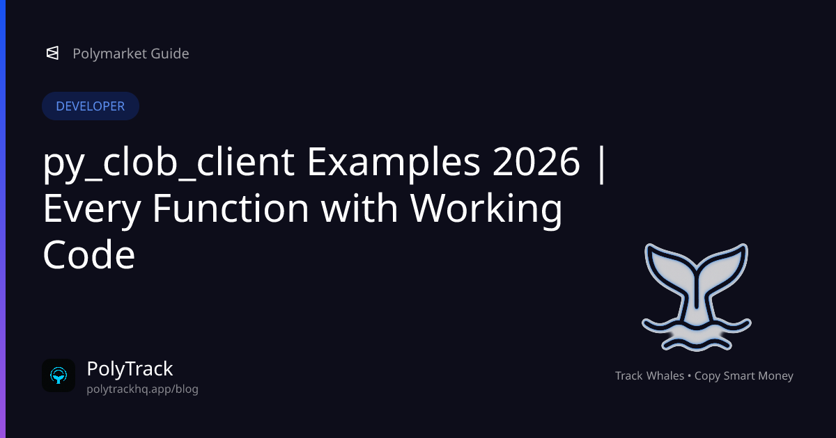 This guide covers all py-clob-client v0.29.0 functions with real-world examples, error handling patterns, and best practices. Whether you're building a simple portfolio tracker or a sophisticated market making bot, this reference has everything you need.